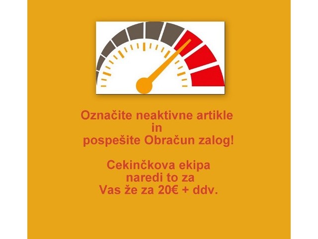 Obračun zalog je neizbežna obdelava za vsakega uporabnika Cekinčka s katero se vrednoti prodaja ter zaloga po metodi drsečih povprečnih nabavnih cenah. Obdelava lahko traja kar nekaj časa, odvisno od količine podatkov prometa ter števila artiklov.
